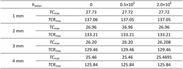 Table 1 (abstract P99). The table of maximum temperature change rate with different average heart transfer coefficient at absorber/water interface
